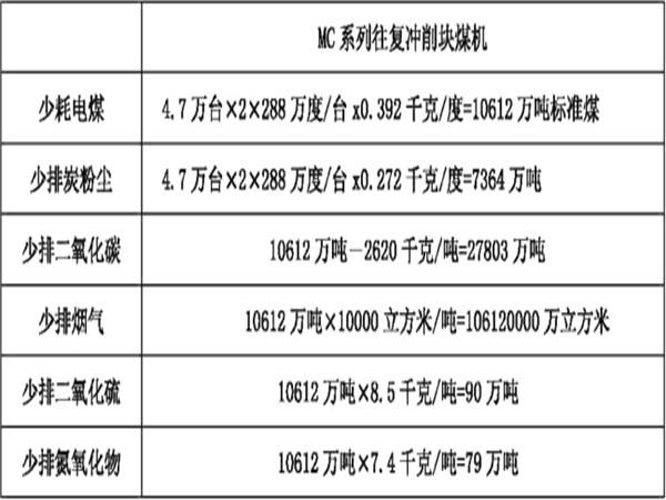 智能往復鋸割塊煤機環(huán)保數(shù)據(jù)表: