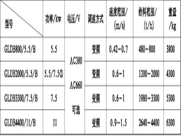 變頻調(diào)速給料機(jī)技術(shù)參數(shù):