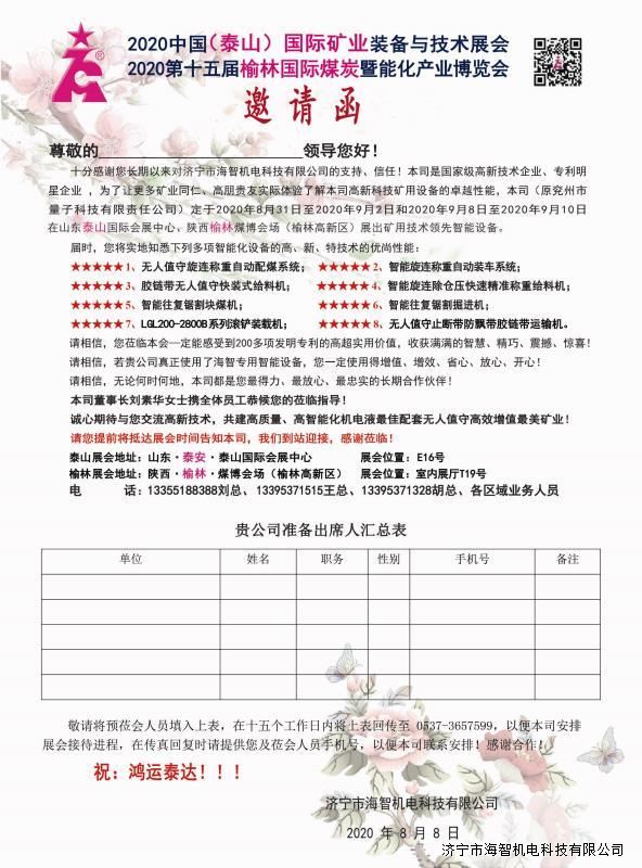 > 邀請(qǐng)函:2020中國(guó)(泰山)國(guó)際礦業(yè)裝備與技術(shù)展覽會(huì)