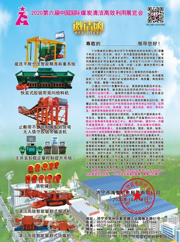 邀請函-第十九屆中國國際煤炭采礦技術(shù)交流及設(shè)備展覽會